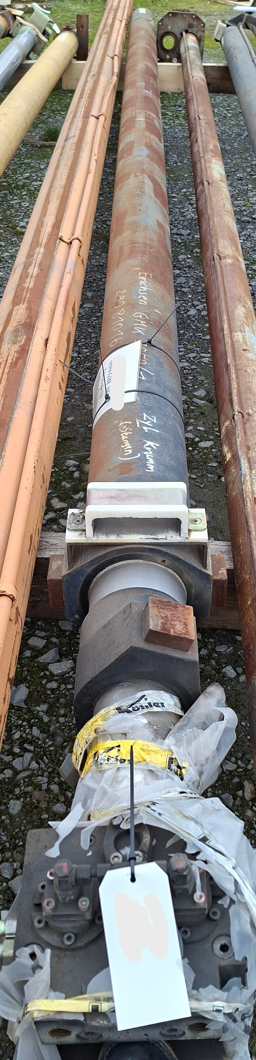 Many parts on stock, boom sections, cylinders, etc.